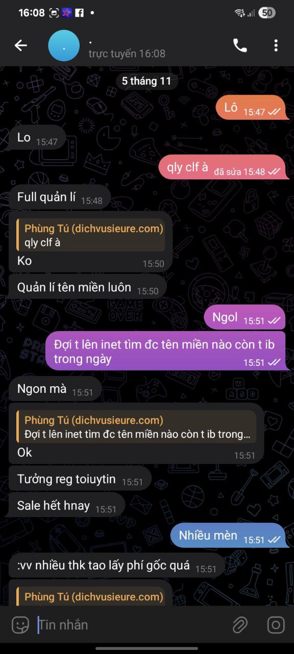 Nó nhận reg miền .net 80k tôi bank xong nó xoá tin nhắn chặn tôi luôn. Nó tên NGUYỄN VĂN HIỆP , nó đổi tele liên tục mọi người thấy stk người nhận tên Nguyễn Văn Hiệp thì né ra nha